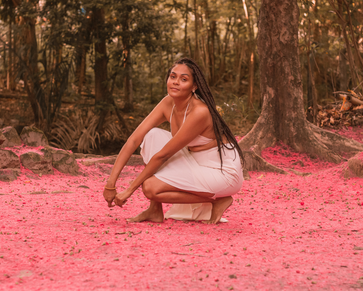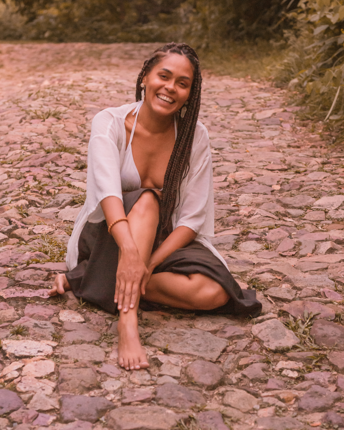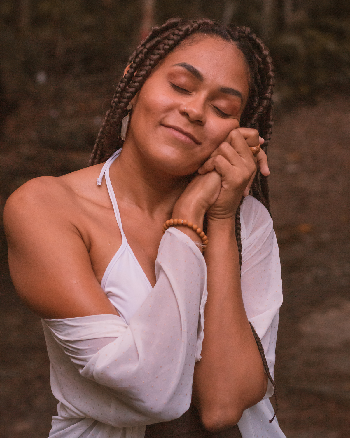 Relaxamento e tranquilidade em um ensaio feminino na natureza